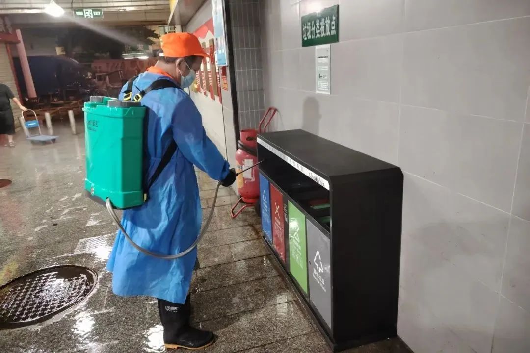 行動(dòng)期間,各市場(chǎng)定期實(shí)施科學(xué)化學(xué)消殺,督促商戶做好檔口衛(wèi)生保潔;嚴(yán)格規(guī)范垃圾與廢棄物處理,確保廚余垃圾日產(chǎn)日清,垃圾桶(箱)加蓋并及時(shí)沖洗,全面疏通排水溝、地漏及下水道,嚴(yán)防淤泥堵塞。并對(duì)有問題區(qū)域立馬進(jìn)行整改。