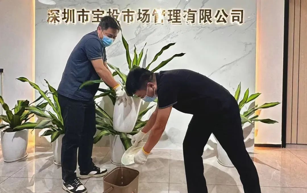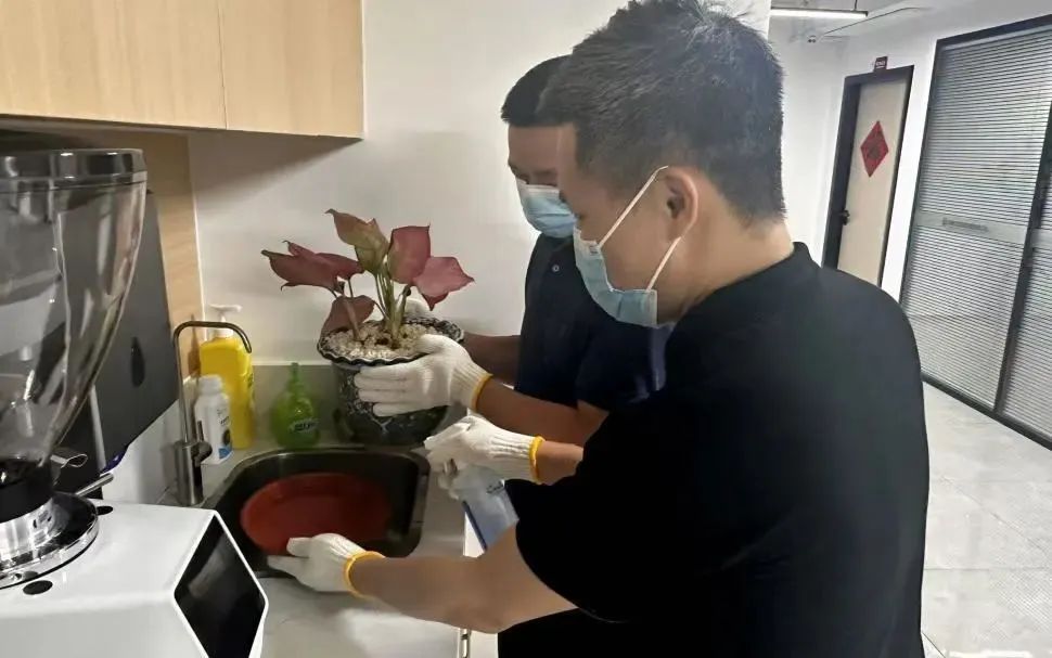 寶投市場(chǎng)公司以身作則,組織公司員工對(duì)辦公場(chǎng)所開展大掃除,重點(diǎn)排查花盆托盤、塑料盒、冷藏設(shè)備接水盤等隱蔽積水容器,確保每日清理并倒置存放,從源頭遏制蚊蟲孳生,切實(shí)筑牢病媒生物防控防線。